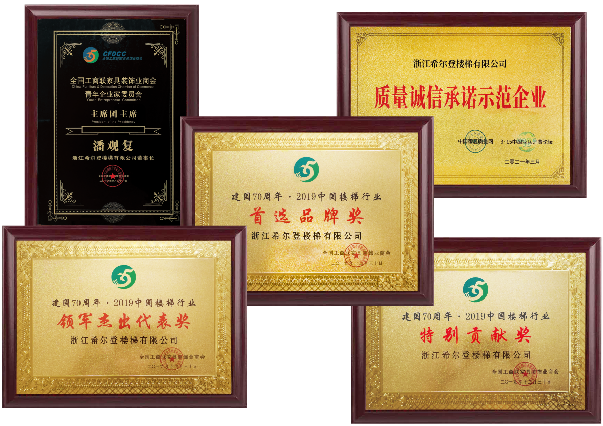 在不斷提升希爾登品牌和企業(yè)實(shí)力的同時(shí),希爾登一直熱心參與樓梯行業(yè)的健康發(fā)展;參與創(chuàng)立全國(guó)工商聯(lián)樓梯專委會(huì)并被推選為中國(guó)樓梯品牌聯(lián)盟執(zhí)行主席和樓梯專委會(huì)執(zhí)行會(huì)長(zhǎng);憑借在行業(yè)內(nèi)的專業(yè)地位,希爾登參與了《木質(zhì)樓梯》,《木質(zhì)樓梯安裝驗(yàn)收和使用規(guī)范》,《住宅內(nèi)用樓梯》,《建筑用玻璃與金屬護(hù)欄》四個(gè)國(guó)家和行業(yè)標(biāo)準(zhǔn)的起草工作。先后榮獲“中國(guó)樓梯十大品牌”、“金木樓梯領(lǐng)軍品牌”、“中國(guó)泛家居發(fā)展中企業(yè)500強(qiáng)”、“中國(guó)家裝行業(yè)金鉆獎(jiǎng)”、“金屬木質(zhì)樓梯一級(jí)資質(zhì)”等二十多個(gè)榮譽(yù)和稱號(hào)。我們幾乎參與和見證中國(guó)樓梯發(fā)展歷程中的所有重大事件。希爾登過去,現(xiàn)在和未來(lái)都是中國(guó)樓梯的標(biāo)桿企業(yè)。